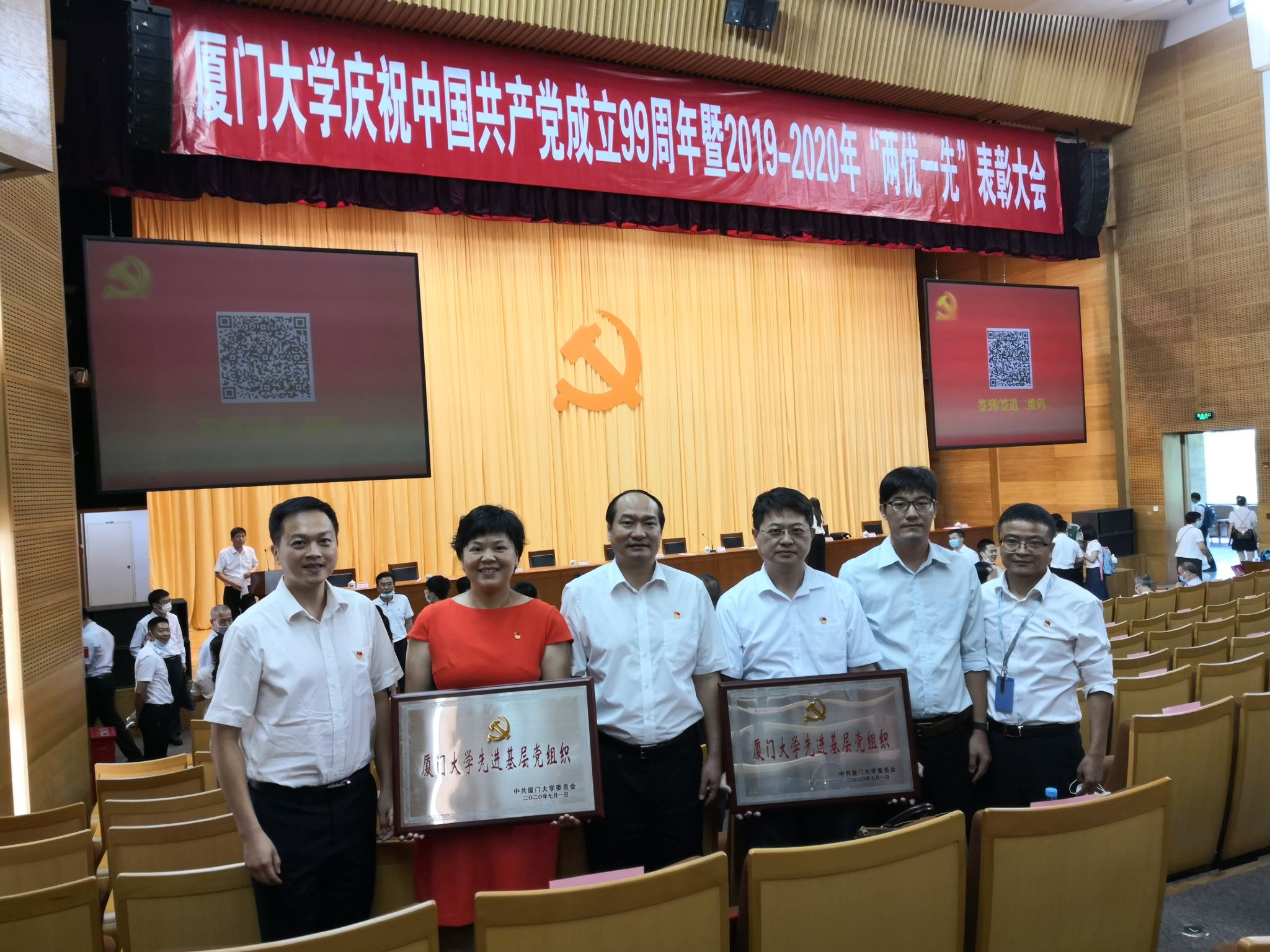 金沙集团1862cc成色党委和教工第二党支部荣获“厦门大学先进基层党组织”,葛胜祥、陈田木、王邵娟、罗贝荣获“厦门大学优秀党员”,张宇斌荣获“厦门大学优秀党务工作者”。
