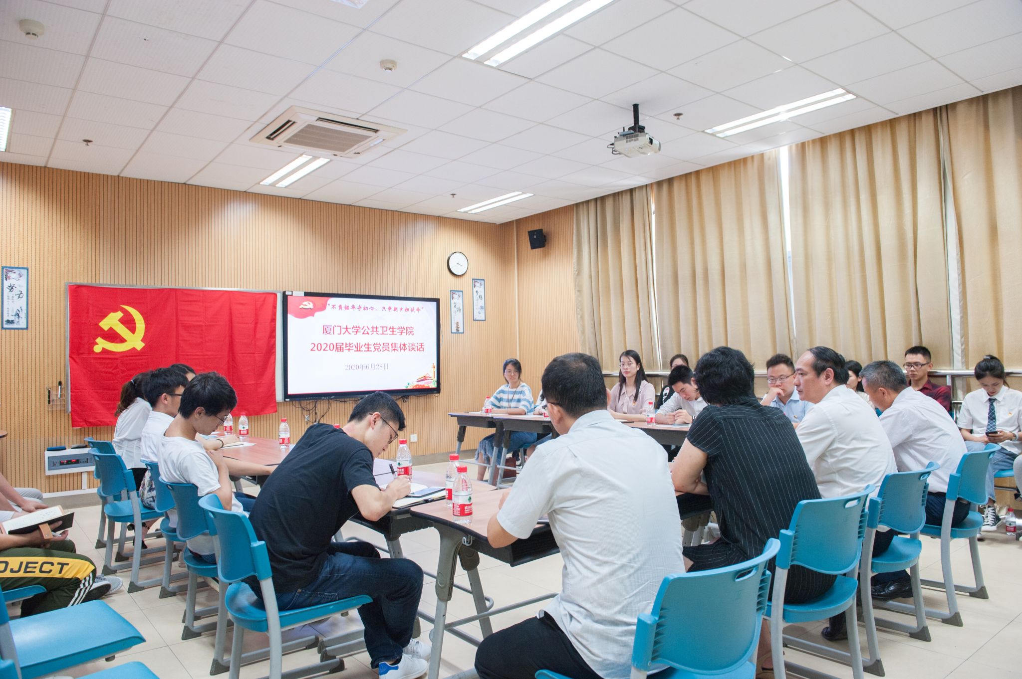 6月28日下午,学院党委在曾宪梓楼103多功能活动室举行2020届毕业生党员集体谈话,欢送2020届毕业生党员迈向人生新的阶段。院党委张琥书记、黄兆君副书记、毕业班辅导员沈鑫老师、赵煜老师及2020届毕业生党员参加谈话会。会议由学院党委副书记杨机像主持。