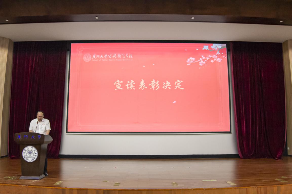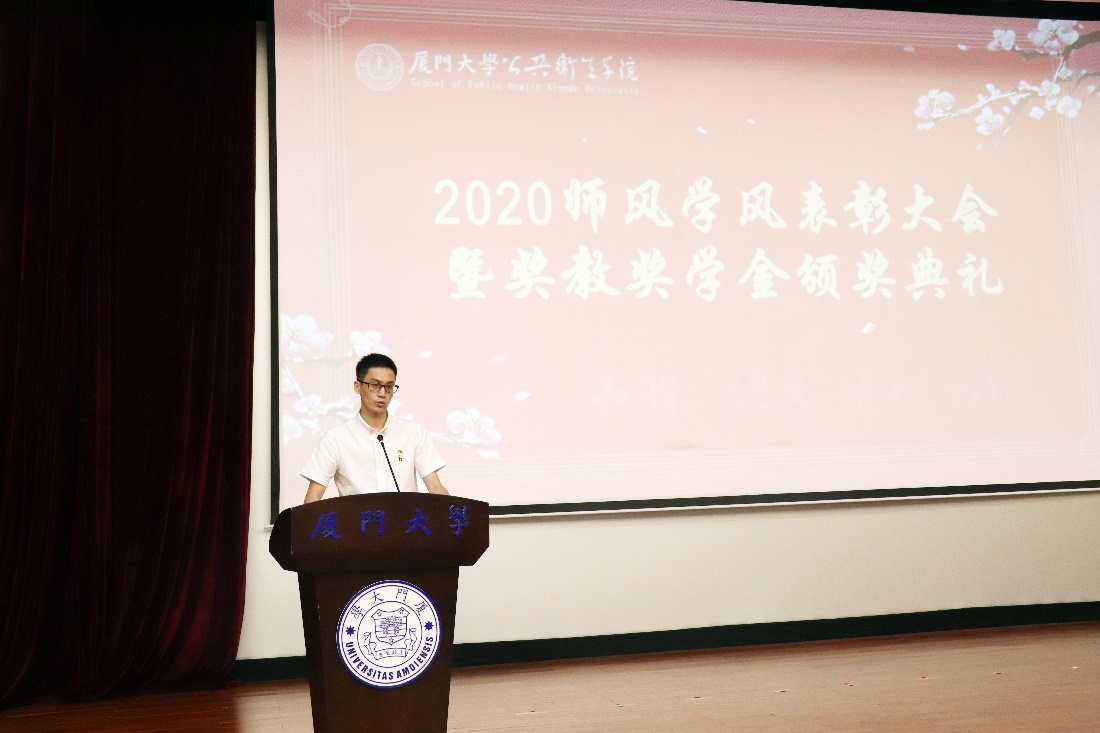 最后,院长夏宁邵教授在总结讲话中向慷慨捐资在学院设立奖教奖学金的养生堂有限公司、广州万孚生物技术股份有限公司和上海西宝生物科技股份有限公司表示感谢,对疫情期间做出积极贡献的师生表达由衷的敬意,并对获奖师生表示祝贺。他强调,此次疫情对于学院而言,是挑战也是机遇,令人欣慰的是在疫情期间学院师生众志成城,利用专业知识为学校、社会、国家做出贡献。他希望,全院师生继续努力,努力参与国家公共卫生体系建设,多发出“厦大公卫人”的声音,主动肩负起公卫人的责任,用实际行动展现公卫人的担当,继续脚踏实地、立足现实、追求卓越、奋勇向前,争取取得更好的成绩。