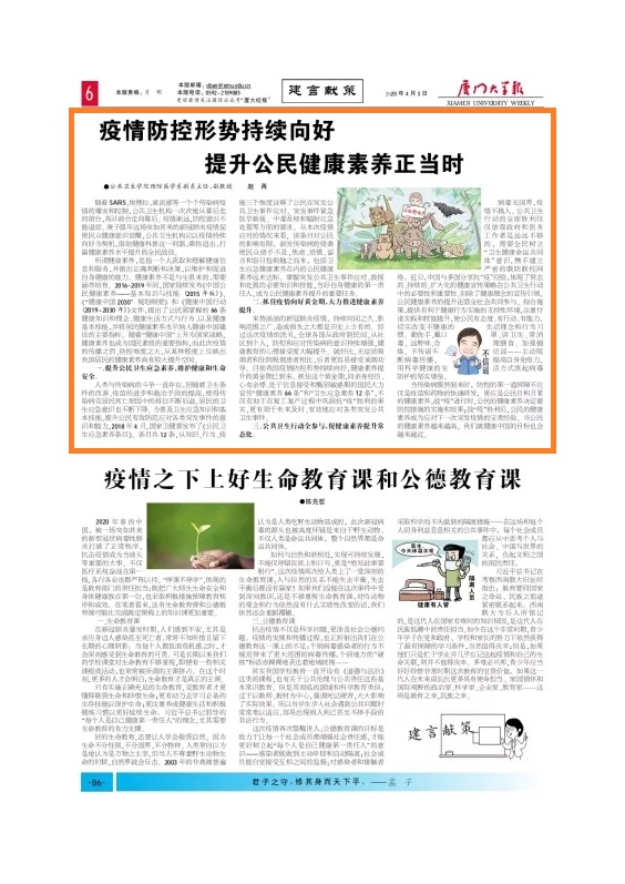 转载自2020年4月3日《厦门大学报》第6版,原文链接: