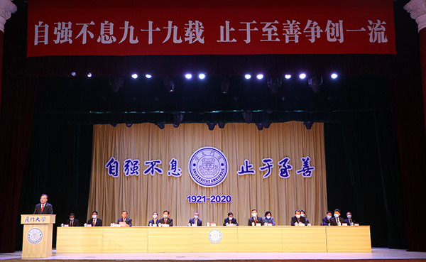 自强不息九十九载,止于至善争创一流。4月6日上午,厦门大学建校九十九周年庆祝大会在建南大会堂隆重举行。大会通过网络向师生员工和校友全程视频直播。全球100余万厦大师生、校友和各界人士在线上线下欢聚互动,共同庆祝厦门大学99周年校庆,展望建校百年。