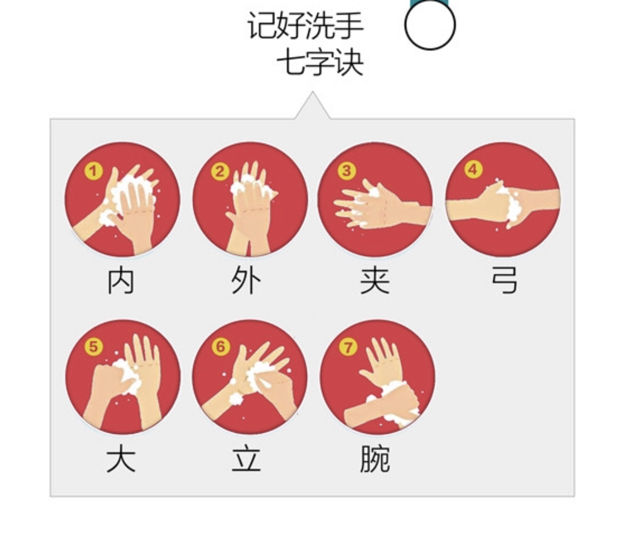 一定要养成洗手的好习惯,饭前便后、到过电梯间等高危区、与人接触、要接触自己面部,特别是鼻孔与眼睛前,都要先洗手。