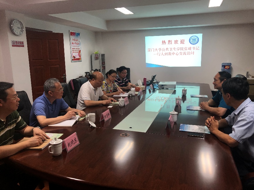 在福建省疾病预防控制中心,张琥书记一行受到了中心党委书记、主任郑奎城、地方病及慢性非传染性疾病防治所所长陈志辉、传染病防治所所长邓艳琴、卫生检验检测所所长林仲及科教科科长赵晓东等的热情接待。座谈会上,学院领导首先介绍了学院教学科研和实习实践安排等相关情况。随后,郑主任及各位所长就省疾控中心及国内外交流合作情况进行了简要介绍。双方就共建教学科研实习基地、学生实习安排、科研项目合作等内容进行了深入探讨,并在实习基地建设方面达成共识,认为学院在教学、科研方面的优势可与中心在现场、实际工作方面的优势互补,合作潜力巨大,双方期待进一步推进长期合作。