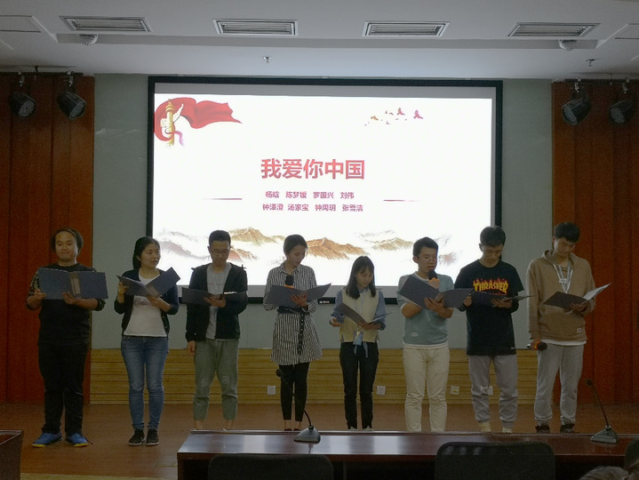 最后,活动在杨晗、陈梦媛、罗国兴、刘伟、钟泽澄、汤家宝、钟周玥、张雪洁等同学朗诵的《我爱你中国》及全场师生共同朗诵《少年中国说》中“故今日之责任,不在他人,而全在我少年”的庄严诵读声中结束。