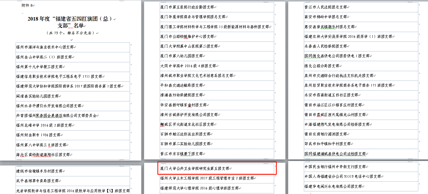 近日,根据共青团福建省委《关于表彰2018年度“福建省优秀共青团员”“福建省优秀共青团干部”“福建省五四红旗团委”“福建省五四红旗团(总)支部”的决定》得知,金沙集团1862cc研究生第五团支部荣获“福建省五四红旗团支部”荣誉称号,这是共青团福建省委授予各基层团支部的最高荣誉。
