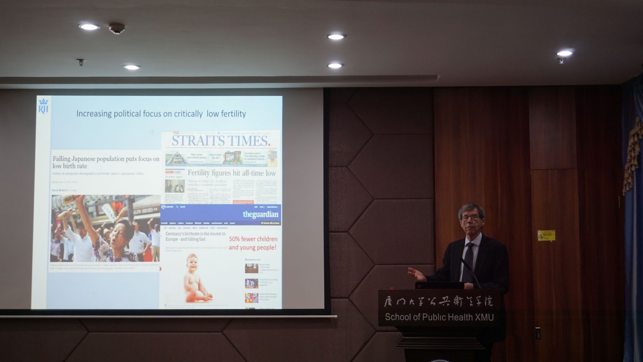 Skakkebaek教授的主要研究方向是睾丸发育障碍综合症(TSD)和环境内分泌干扰效应。在讲座中,Skakkebaek教授指出,全球范围内男性精子质量下降及其相关的生殖能力降低是重大的公共卫生问题,而环境暴露和生活方式改变是主要的诱因。围产期和婴幼儿时期是关键敏感期,期间环境污染物暴露可能诱发TSD。Skakkebaek教授在孕妇的乳汁中检测到包括塑化剂、双酚A、多环芳烃等一系列的环境污染物,婴儿睾丸的Leydig和Sertoli细胞的正常生理功能受到了干扰,可能导致其成年后严重的精子质量问题。随后,Skakkebaek教授结合多年的研究发现就环境污染物影响精子质量的分子机理进行了详细的讲解。讲座中,Skakkebaek教授还针对环境暴露与男性生殖研究中的若干前沿问题分享了自己的经验和看法。讲座结束后,Skakkebaek教授详细回答了与会师生的提问,讲座互动气氛热烈,极大扩充了师生对环境健康领域的认知。