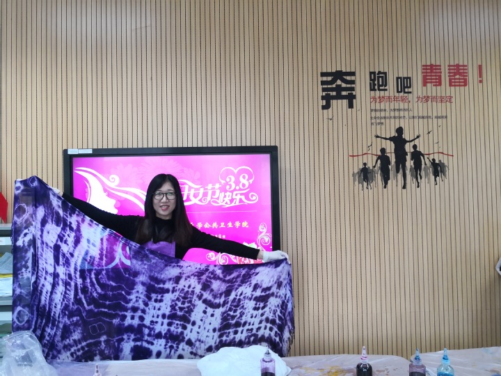 活动伊始,学院工会主席王颖彬老师为广大女教职工送上节日祝福,充分肯定了女教工在学院各方面发展和活动中的积极作用。在一片欢声笑语中大家在专业老师的指导下分别开始了扎染围巾、手绘布袋、手绘雨伞等艺术创作。活动过程中,大家对这次特别的艺术课堂表现出了浓厚的兴趣,并认真地根据现场老师的讲解进行专注有序的创作。在大家的努力下,一条条个性十足的围巾、一把把精致的雨伞、一个个秀美的布袋呈现在大家的眼前,大家互相欣赏着自己的作品并互相分享。精彩的活动也得到了张琥书记的肯定,并指出多组织此类活动,丰富老师们的业余生活。