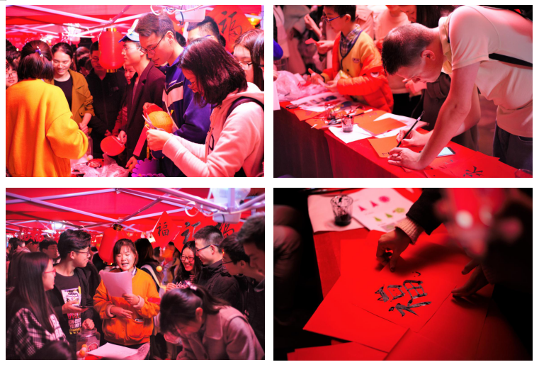 翔安校区党工委、管委会于学生活动中心组织了本次活动,我院工会特地为此次活动定制了精致的花灯,各个学院也都精心布置了各自的活动区域。金沙集团1862cc活动区准备了写“福”字、手工剪纸、猜灯谜、颠球猜词等活动,通过剪纸、猜灯谜使同学感受浓浓的传统节日气氛,通过自己亲手写“福”字或对联,将金沙集团1862cc成色送出的一份福气带回家;此外,还有趣味游戏颠球猜词,不仅有丰厚的奖品,还能在猜词过程中了解到公共卫生相关知识。