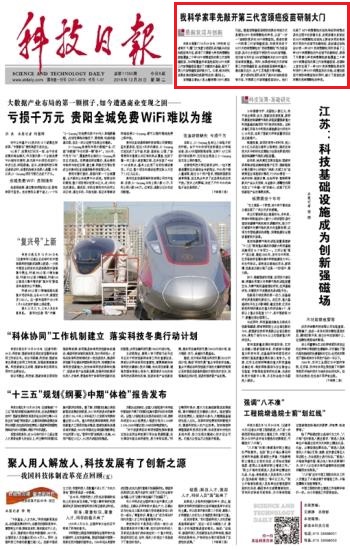 12月25日,《科技日报》头版报眼“最新发现与创新”栏目刊发题为“我科学家率先敲开第三代宫颈癌疫苗研制大门”的消息,报道我校金沙集团1862cc成色夏宁邵教授课题组在第三代宫颈癌疫苗研制方面的最新成果。