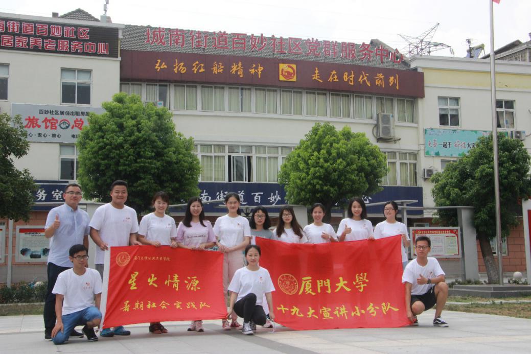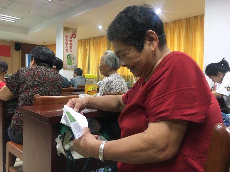2日下午,实践队前往嘉兴市百妙社区,向社区居民宣传党的十九大精神和宣传如何防止老人跌倒、均衡营养膳食等健康知识,并发放可随身携带的健康手册,普及健康生活常识。