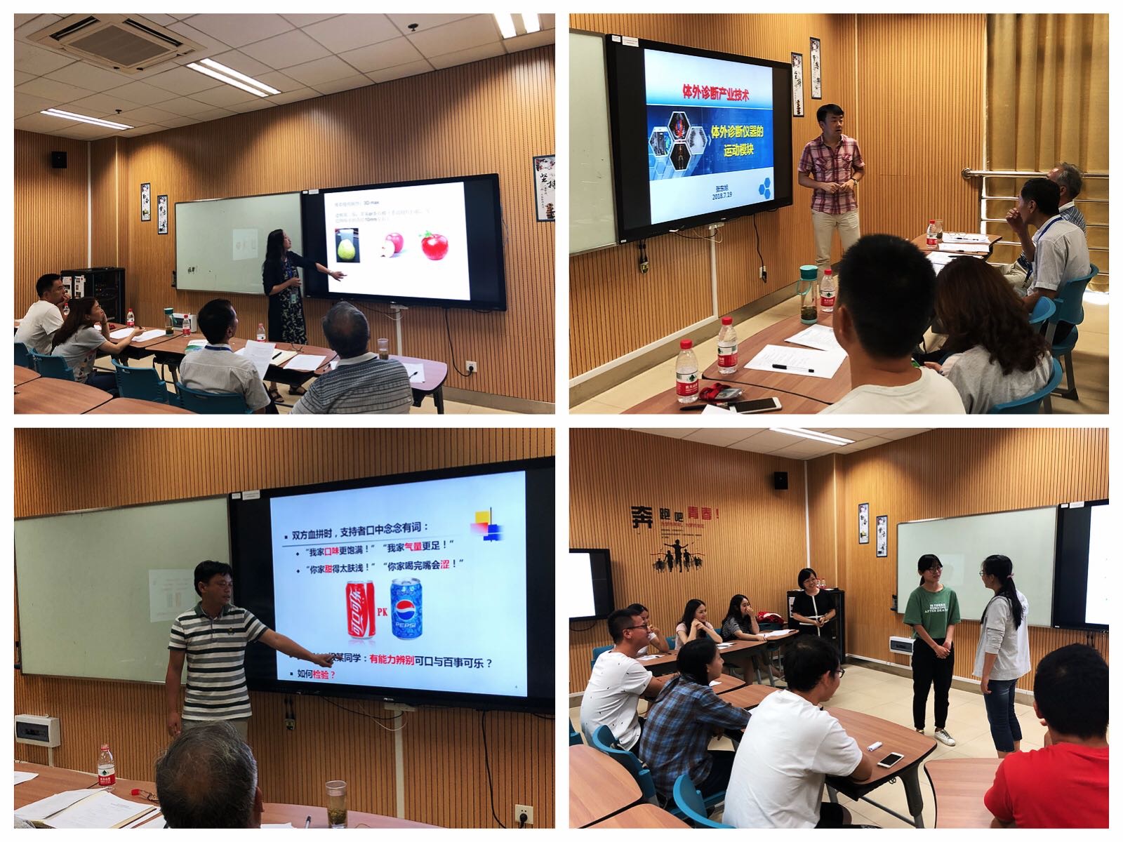 在首先进行的理论课组中,7位参赛教师通过精心准备,进行了20分钟的教学演示。他们有的娓娓道来、条理清晰,有的激情澎湃、重点突出,还有的在专业课中融入了思政的内容,引人入胜。课堂展示中也融入了多媒体影像、手写板数、案例分析和问题互动等多种教学手段。在随后的翻转课堂比赛中,江宜珍老师以丰富多样的课堂设计形式进行了很好的师生互动,充分体现了以学生为主的教学改革新模式。