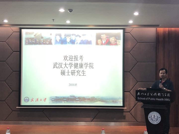 随后,于院长一行来到曾宪梓楼101报告厅举办武汉大学健康学院2019年研究生招生宣讲会,我校2014级预防医学专业、2015级护理专业的学生参加了本次宣讲会。何启强副院长向同学们重点介绍了健康学院的基本情况、学科特色、研究生招生与培养模式、奖助政策等情况,鼓励同学们积极报名参加夏令营。