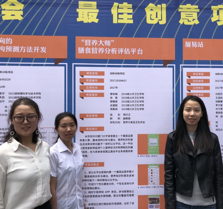 由金沙集团1862cc学生蔡裕城、庄鋆妮、郭雅倩、李毅祺和张薇组队完成的大创项目《“营养大师”膳食营养分析评估平台》,是针对厦门大学食堂建立的一个集菜品营养素计算、膳食结构分析与建议、营养知识科普和营养健康咨询等多种功能于一体的小程序。该平台拟与厦大信息系统联通,准确、便捷地监测个人营养状况并获得相应的膳食指导,同时为相关研究提供基础数据。
