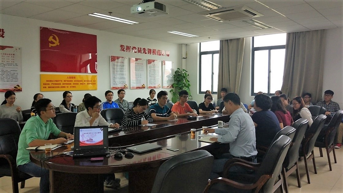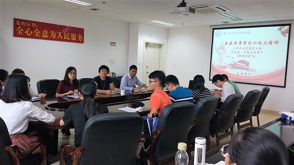 党委副书记黄兆君老师首先简要阐述了学习的重大意义。黄老师从新时代、青年、健康中国三个关键词出发,联系学生工作与学院发展,提醒大家要将党的十九大精神的学习落到实处。她提出,同学们要每天抽出一点时间来阅读学习十九大报告,积少成多,提高自身政治素养,做好学生带头人。
