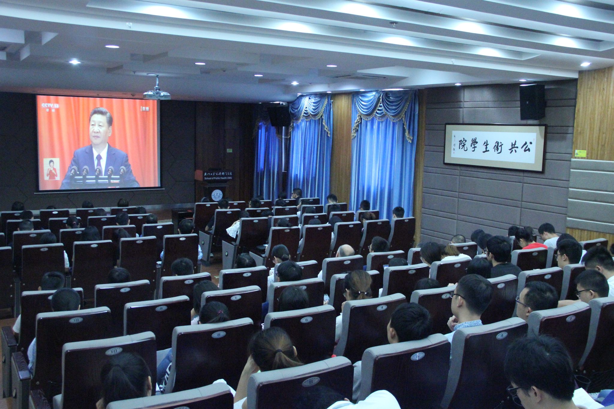 10月18日上午9时,万众瞩目的中国共产党第十九次全国代表大会在北京人民大会堂隆重开幕,习近平代表十八届中央委员会向大会作了报告。学院党委组织全院师生在曾宪梓楼101报告厅集中收看了党的十九大开幕盛况。