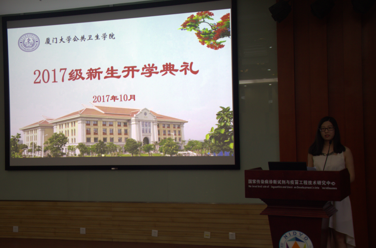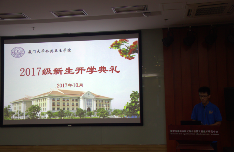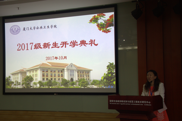 开学典礼在嘹亮的国歌声中开始。院长夏宁邵教授在讲话中,首先对来自五湖四海,相聚于厦大公卫这个大家庭的2017级190位新同学表示了热烈欢迎!他向同学们简要介绍了学校和学院的有关情况,并寄语全体新同学,希望同学们秉持“和谐、博爱、务实、创新”院训,做到“勤学、深思、乐生、力行”。一是要勤学。希望每位同学都要把学习放在最重要的位置,根据自身实际情况,定一个适合自己的目标,勤奋学习。二是要深思。希望同学们都要学会冷静地思考、辨别从而探索、创造,并将这思索和创造带到学习和研究中。三是要乐生。希望同学们追求成功的同时,努力挖掘积极的力量,培养积极的情绪,从而获取让自己幸福的能力。四是要力行。希望同学们在学习中身体力行,积极参加社会实践与学生活动,学会在人群中与人交流,深入基层第一线,掌握第一手资料和信息。最后,他衷心祝福同学们在厦大有一个美好的开端,在金沙集团1862cc成色度过美好的青春时光,在学习与科研中感悟、成长,收获幸福。