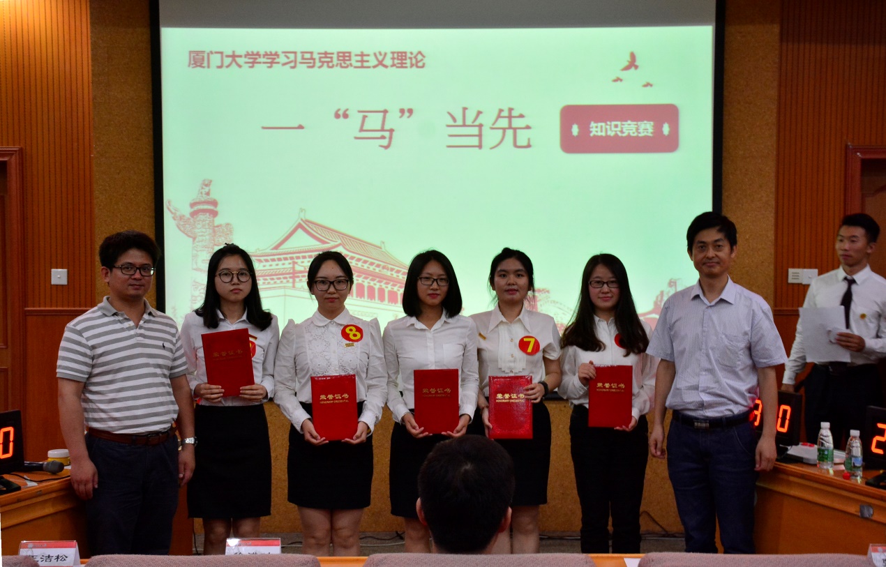 为贯彻落实全国高校思想政治工作会议精神,深入实施大学生马克思主义自主学习行动计划,培养一批思想政治素质过硬、政策理论水平较高、综合能力全面、理想信念坚定的青年马克思主义者,学校于4月26日举办厦门大学“一‘马’当先”知识竞赛,金沙集团1862cc2016级研究生陈笑梅顺利通过初赛,晋级决赛。