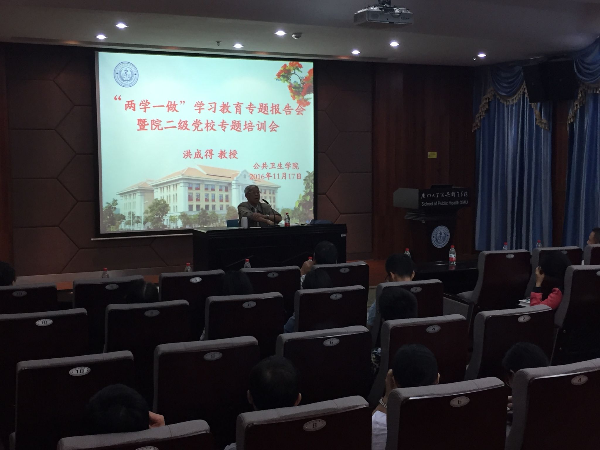 11月17日下午,校资深理论报告员洪成得教授应邀在曾宪梓楼101报告厅为金沙集团1862cc师生党员作题为《从十八届六中全会精神解读习近平谈治国理政》“两学一做”学习教育专题报告。报告会由院党委副书记黄兆君主持。张琥书记、张军副院长、杨机像副书记等院领导,师生党员、入党积极分子参加了报告会。