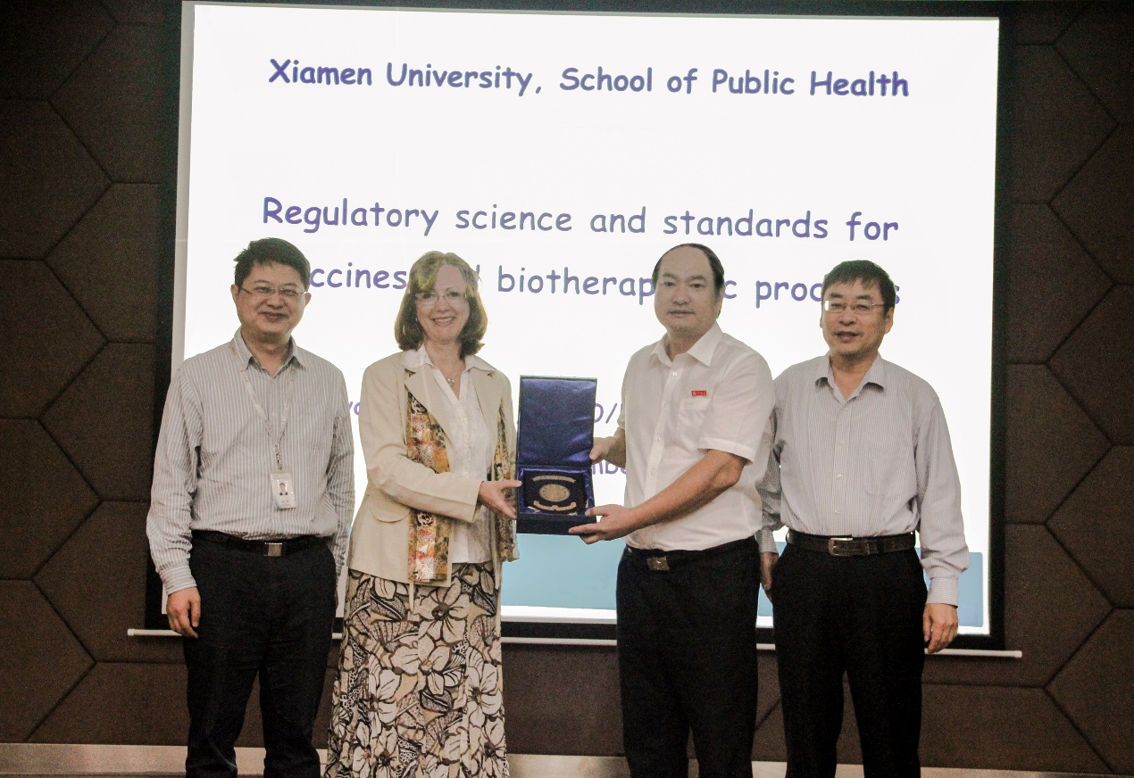 11月14日上午,世界卫生组织(WHO)Ivana Knezevic博士应金沙集团1862cc成色邀请在翔安校区为我校师生作了题为《Overview of WHO standards and their use in biologics and vaccine development》的南强学术讲座(第752讲)。讲座由金沙集团1862cc成色副院长张军教授主持,学院党委书记张琥向Ivana博士赠送南强学术讲座纪念牌。