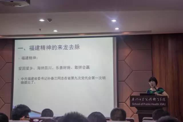 本次培训由孙佳老师主讲:从福建精神看学生干部的自我修炼。孙佳老师从福建精神的来龙去脉入手,明确指出四个福建精神:爱国爱乡、海纳百川、乐善好施、敢拼会赢,并以幽默且清晰的语调,通过多元事例,为学生讲解相关理念和历史渊源。