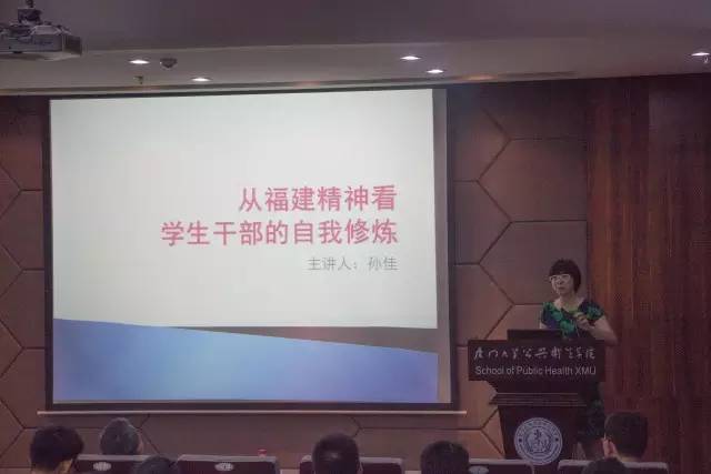 随后,孙佳老师将话题深入,通过丰富而多层次的事例,将福建精神孕育的做人与团队管理哲学逐步呈现于学生眼前,并将其对应于学生干部为人处世,做事准则,予以借鉴。