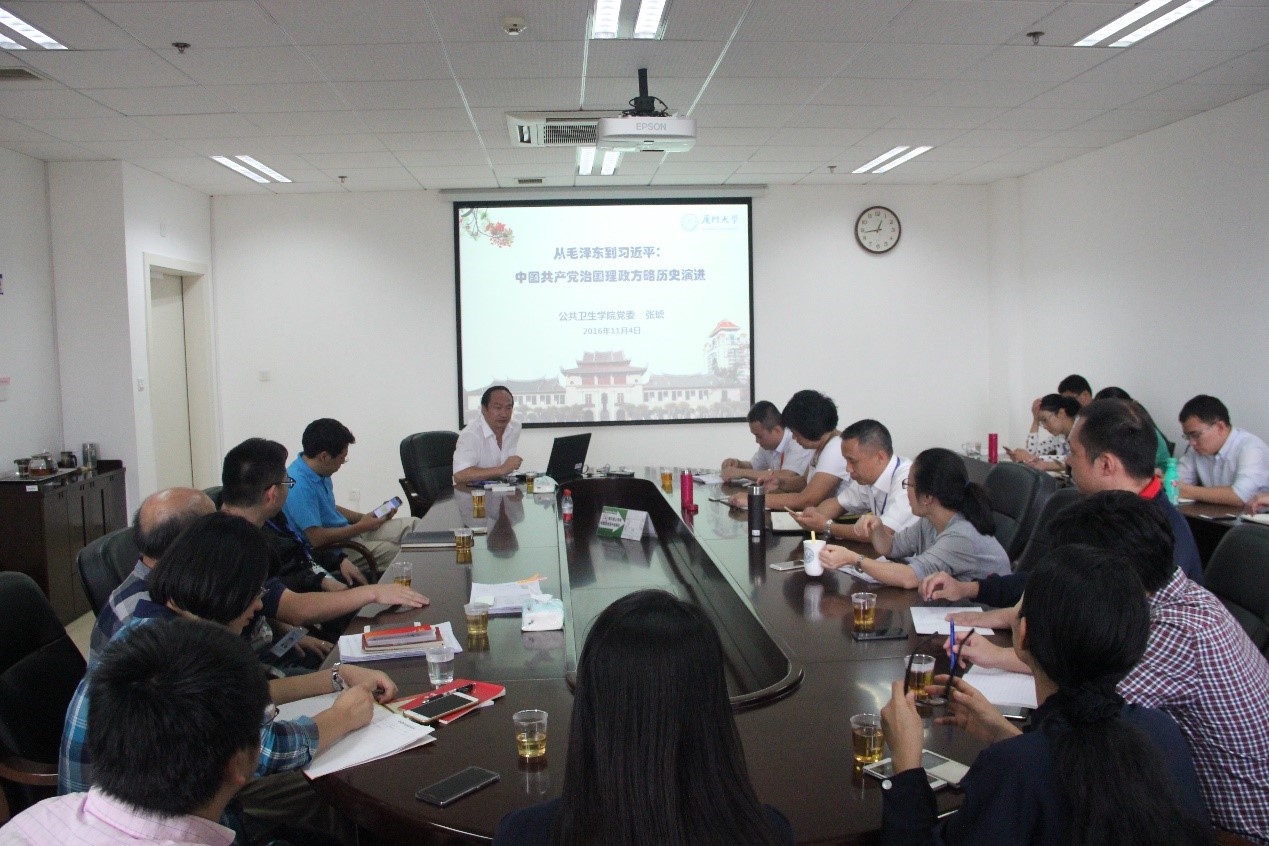 11月4日中午,院党委张琥书记在曾宪梓楼302会议室为教工第一党支部和教工第三党支部上了一堂别开生面的党课,党课的题目是《从毛泽东到习近平——中国共产党治国理政方略历史演进》。