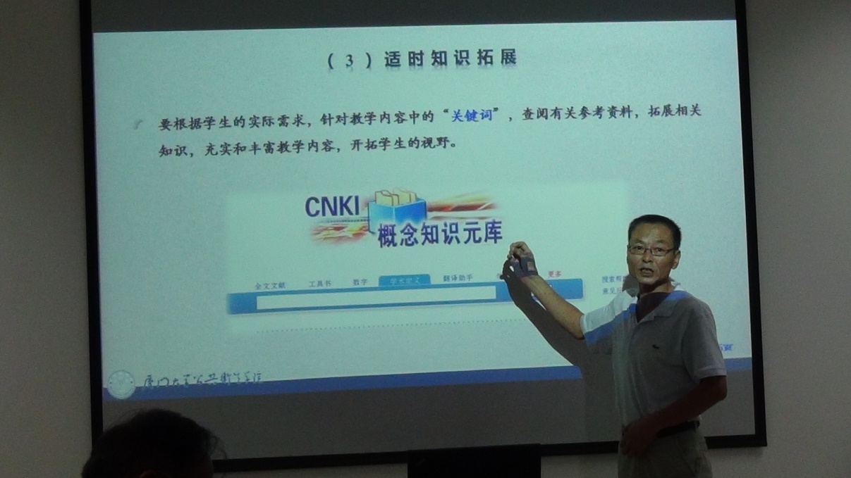 本次教研会议由范春教授、赵苒助理教授、刘衡川教授向大家介绍教学经验。首先,范春教授围绕“备课、PPT制作、授课”详细地向大家阐述了二十多年教学中的体会,谈到确立教学目标、剖析教材的重要性,强调了教学应理论联系实际,利用CNKI扩展学科知识,科研结合教学,特别说明PPT制作和课前预演提升授课的精彩,并向大家展示了课件插入语音播放的制作技巧。