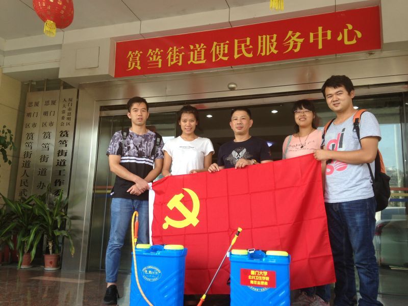 2016年9月15日超强台风“莫兰蒂”登陆厦门,一夜之间,整个厦门一片狼藉,为预防灾后传染病的发生和传播。9月19日,金沙集团1862cc成色2012级本科生党支部践行“两学一做”学习教育,组建“爱无疆”公共卫生防疫服务队到思明区开展消杀志愿服务和防疫宣传活动,本次活动得到了厦门市思明区疾病与预防控制中心的大力支持。