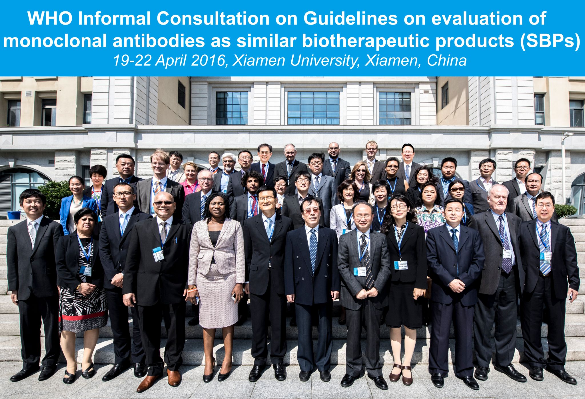 本次会议由WHO总部主办,中国食品药品检定研究院和厦门大学联合承办。WHO总部官员Kai Gao博士、WHO西太平洋地区办公室官员Jinho Shin博士、国家食品药品监督管理总局生物制品处调研员常卫红女士、中国食品药品检定研究院生物制品首席科学家王军志研究员,与来自英国、德国、芬兰、加拿大、新加坡、韩国、日本、中国、泰国、沙特阿拉伯、伊朗、尼日利亚、加纳、阿根廷等14个国家和地区的近40位专家、药监部门官员和工业界代表参加会议。