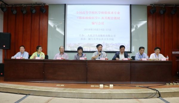 经人民卫生出版社研究,决定编写全国高等学校医学检验技术专业教材《临床检验医学》及其配套教材《临床检验医学案例分析》、《临床检验医学学习指导与习题集》、《临床检验医学》数字化与网络增值服务PPT, 并将该套教材作为全国高等学校医学检验专业第六轮暨医学检验技术专业第一轮规划教材的补充。编写会议,于2016年10月14日至17日在全国最美大学之一的厦门大学翔安校区隆重召开。由人民卫生出版社主办,金沙集团1862cc成色承办, 金沙集团1862cc郑铁生教授和上海交通大学医学院倪培华教授担任主编。来自上海交通大学、武汉大学、四川大学、中南大学、中山大学、重庆医科大学等42所院校的编委,共计55名专家教授参加了会议。